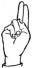 На ћирилици написано СТРАИЊА ДИМИТРИЈЕВИЋ састоји се из 19 слова [?]. Исписано ћириличном једноручном азбуком за глувонеме: